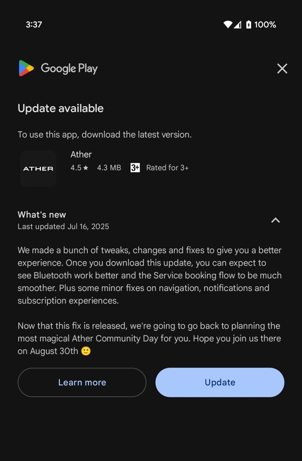 Push location to scooter in Ather app is not working after Ather stack update in my 450x. Service centre unable to resolve issue.